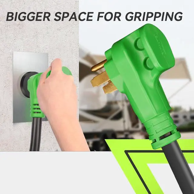 90-degree UV-resistant plug with bigger space for handles allows you to plug in your power cord with ease. PATENTED