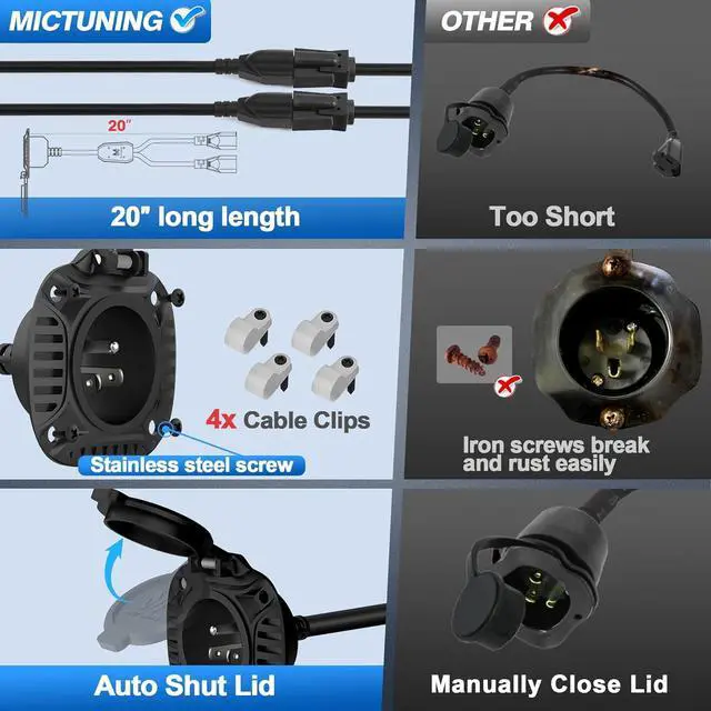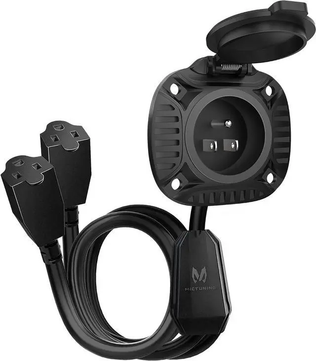 MICTUNING Powerful 15Amp 250V AC Port Plug with 20" Integrated Heavy Duty Extension Cord.