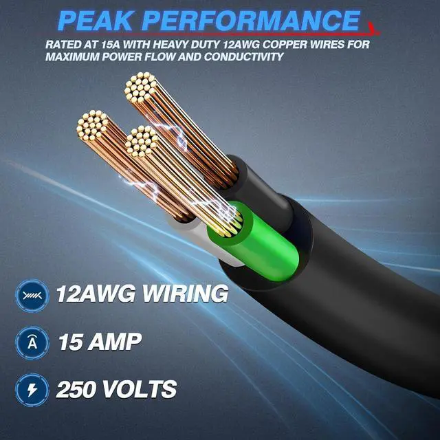 AC Port Plug rated at 15-amps with heavy-duty 12AWG copper wiring for maximum power flow and conductivity. It offers strong and stable power supply to your electrical device.