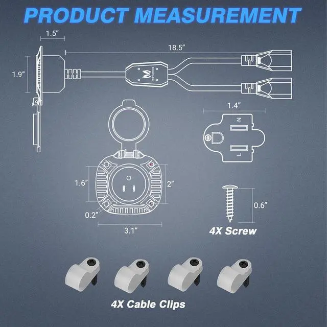 Easy to install, plug and play, No cable modification or hand wiring needed. Simply drill a 2-inch hole, insert AC port plug, then secure with 4 screws for a quick and easy installation.