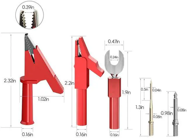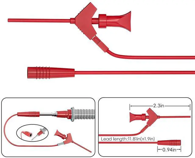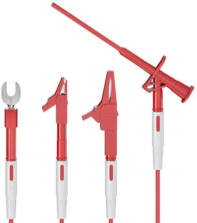 Goupchn 28PCS multimeter test leads kit provide you with high quality products which are safe and easy for all professionals and DIY people. This is a multifunction leads kit that contains all the necessary accessories to do testing including multimeter leads,replaceable probes, alligator clips, spade plug adapters, wire-piercing probes and mini grabber test hook clips. A variety of accessories can be used in various combinations.