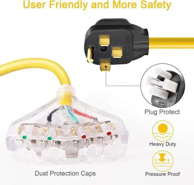 SAFETY ASSURANCE: 10 AWG (American wire gauge) x 4C all-copper wires, which has higher conductivity. PVC material jacket, fire retardant. Superior performance. The clear end receptacles with dust protection caps, provide optimum performance and added safety.