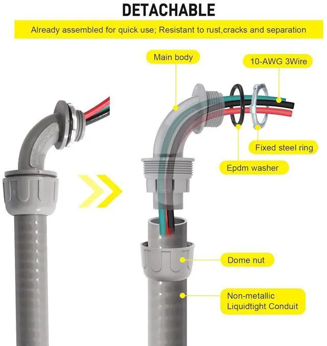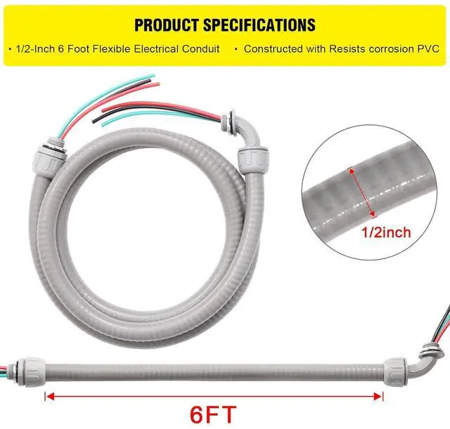 Effortless Installation-Upgrade your electrical system with our Power Whip Assembly Kit. This kit comes preassembled with a 1/2-inch x 6ft nonmetallic liquid tight flexible electrical conduit and 10 gauge wire,stripped ends and trimmed leads for easy termination,the plastic connectors make installation quicker and more convenient than PVC non-metallic tubing and fittings