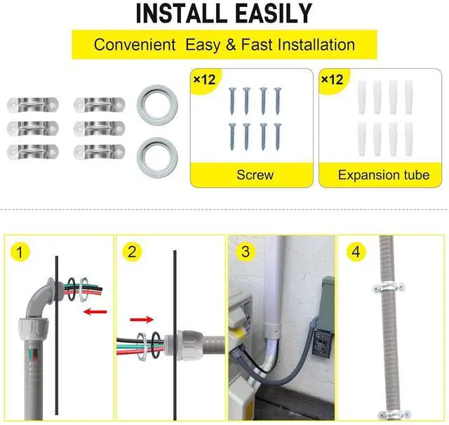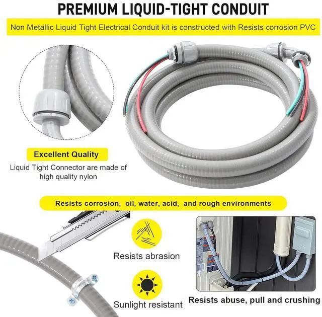 Wide Application-This A/C Whip Assembly Kit is Air condition unit hook upheat pumps, pools, spas, outdoor lighting, motors, controls, solar panels, generator sets, ductless mini split ac/heating system and other exterior applications.
