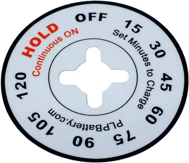 Our most popular timer can be used to replace older electrical and mechanical timers found in many models of battery chargers. A cost-effective retro-fit to replace more expensive OEM timers. Designed to be easy to install through a 3/8" stem-mounting hole. Wire terminals use .250" industry-standard solderless push-on connectors. No AC power is required to run this timer. No specialty tools required. When oriented with the "OFF" position at 12 o'clock, timer has a "HOLD" position (constant ON) when rotated counterclockwise to the 11 o'clock position. Otherwise, when rotated clockwise to a set position, it will countdown back to the OFF position at 12 o'clock. >>>Features 120 Minute duration, with "HOLD" position. Mounts in 3/8" panel hole with included panel nut and lock washer. Straightforward instructions and simple design allows easy installation. No special tools are required. >>>Specifications .250" Push-on connectors. Switched Current Rating 13A/120VAC, 16A/250VAC Timer body - 1.71"H x 1.85"W x 1.04"D Stem - .70"L x 6MM (.236") Diameter >>>Contents 120 minute timer with "HOLD" position. Skirted knob with metal insert. Mounting fasteners & hardware. Laminated 120 minute Dial Label. Instruction sheet.