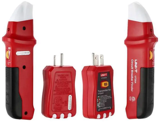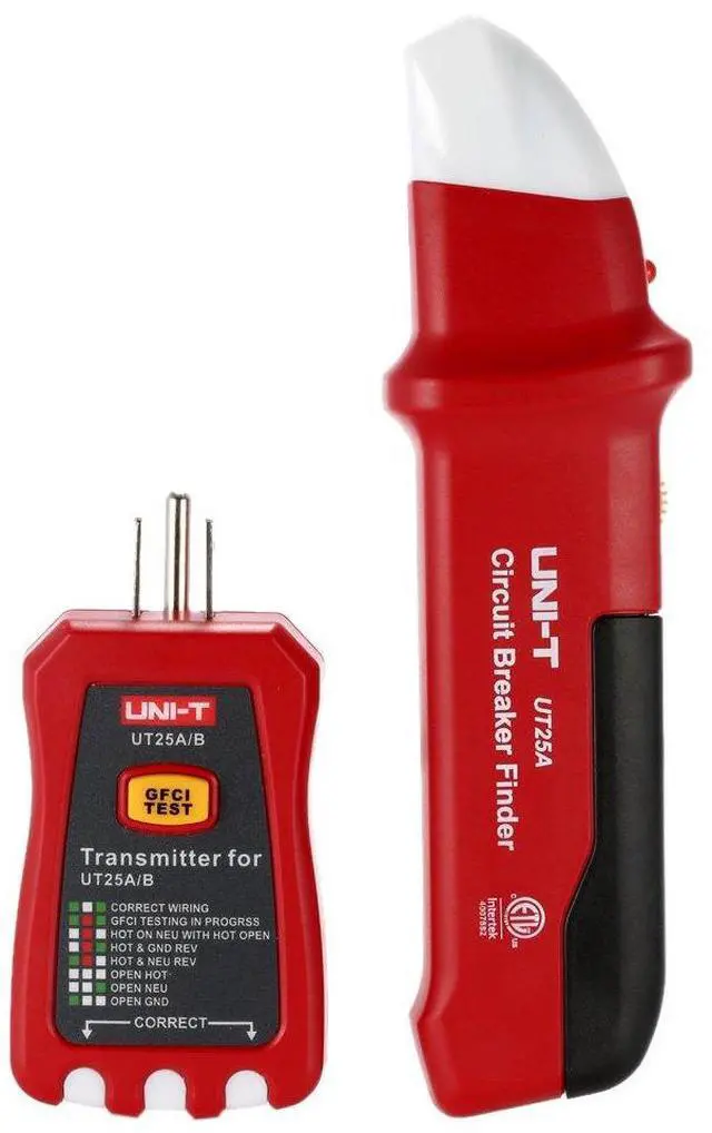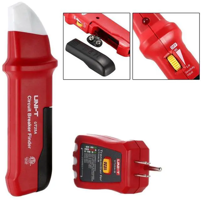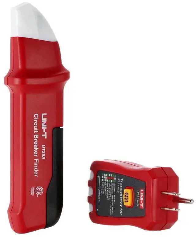 Specifications: Receiver: Type: UT25A / UT25B(optional) Operating Voltage: 90-120V Operating Frequency: 50-60Hz NCV Working Voltage: 80V (only for UT25B) Receiving Distance: 30M Power Supply: 1 * 9V Type 1604/6F22 Battery(not included) Operating Temperature: 5°C-40°C Transmitter: Working Voltage: 110-125V Operating Frequency: 50-60Hz Fuse: 1A, 250V, Dia.:4*11mm Receiver Size: 19 * 5 * 3cm / 7.48 * 1.97 * 1.18in Receiver Weight: 91g / 3.22oz Transmitter Size: 10.5 * 5 * 2.5cm / 4.13 * 1.97 * 0.98in Transmitter Weight: 79g / 2.81oz Package List: 27.5 * 16 * 4cm / 10.83 * 6.3 * 1.57in Package Weight: 261g / 9.25oz Package List: 1 * Circuit Breaker Finder(Receiver) 1 * Socket Tester(Transmitter) 1 * User Manual Package List 27.5 * 16 * 4cm / 10.83 * 6.3 * 1.57in Package Weight: 261g / 9.25oz Package List: 1 * Circuit Breaker Finder(Receiver) 1 * Socket Tester(Transmitter) 1 * User Manual
