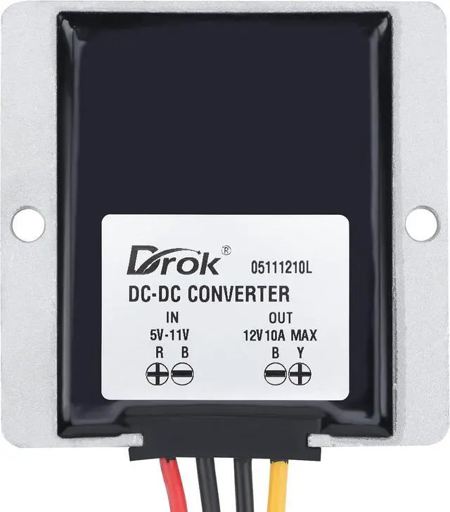 Parameters --- DROK step up converter input voltage range 5V-11V, output voltage 12V, can be used to convert 6v to 12v, output current 10A, output power 120W, conversion rate more than 93%.