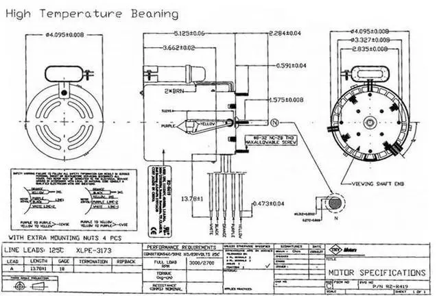 1/8 hp, 1.8 amps, 115/230 Volts 60 Hz., 3000 RPM, 1-Speed