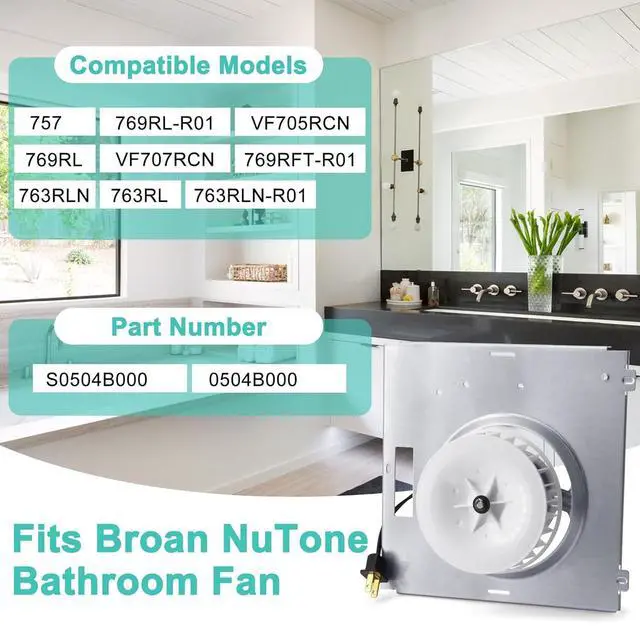 Compatible Models - Fits Broan NuTone Bathroom Exhaust Fan: NuTone 769RL, 757, 769RFT-R01, 769RL-R01, VF707RCN, 763RLN, 763RL, 763RLN-R01, VF705RCN (Model 769RL limited to 'B' device only). Part Number: S0504B000, 0504B000, JESP-61K13, C-87547