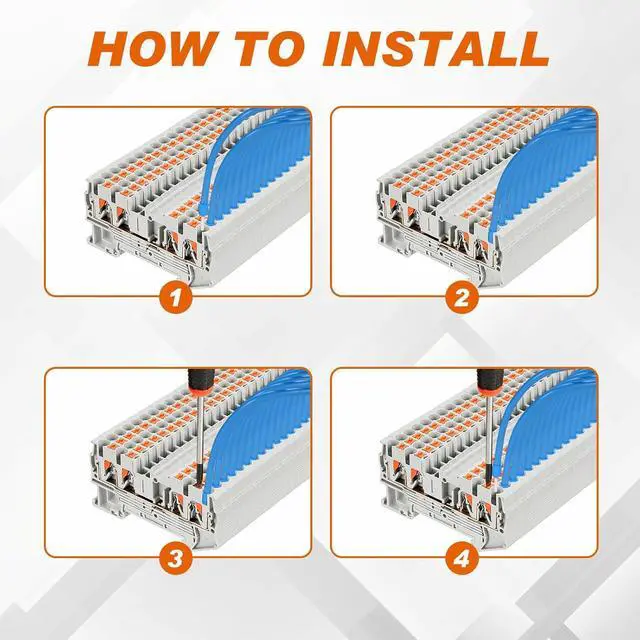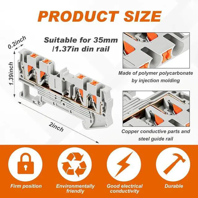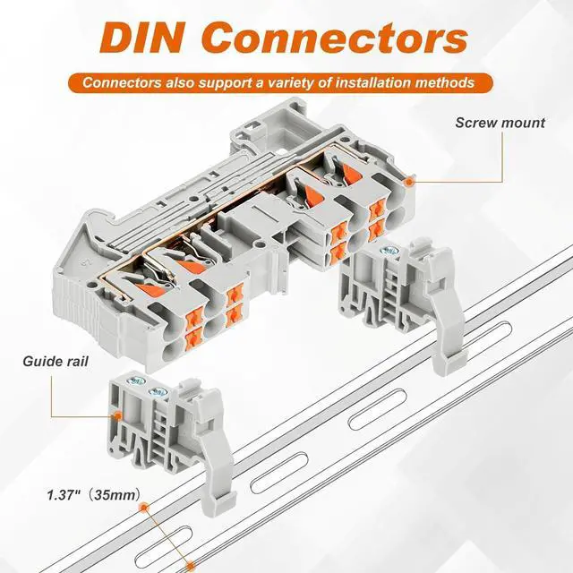 Product Features: the DIN rail terminal blocks are self locking push in terminals, easy to operate and use, these terminal blocks can remain in good condition even under tension, so you can use them with confidence