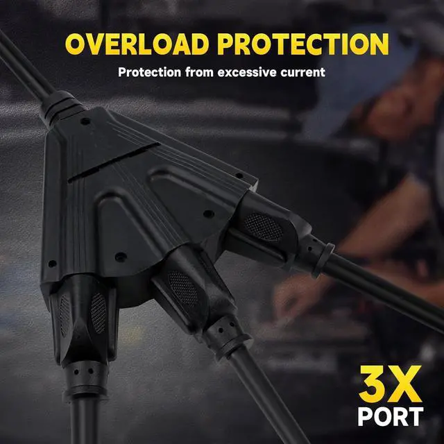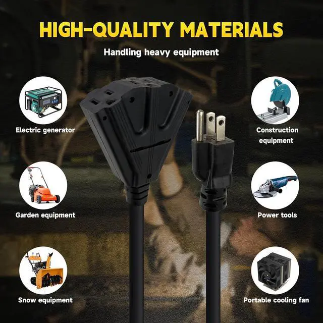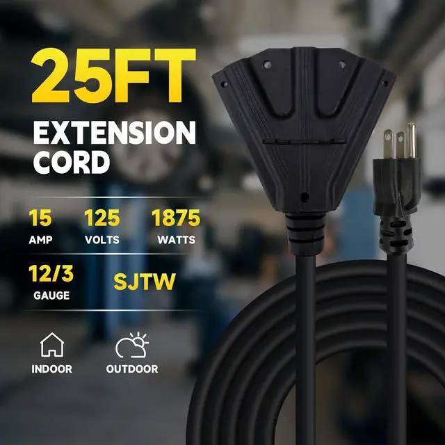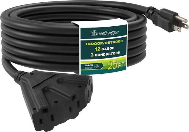 GreenProsper 3 Outlets Indoor Outdoor Waterproof Extension Cord 25 FT, 12/3 Heavy Duty Black Electrical Power Cable with Multi Outlets 3 Prong, Great for Outside & Landscaping