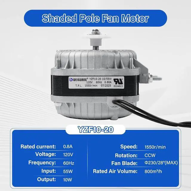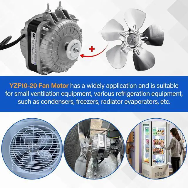Widely Application: YZF10-20 fan motor can effectively dissipate heat, suitable for small ventilation equipment, various refrigeration equipment, such as condensers, freezers, radiator evaporators, etc. Compatible with many brands refrigeration refrigeration equipment, including Atosa, Avantco, Fasco, Elco, Supco, Mars , and others.
