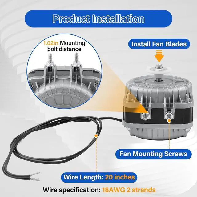 Easy to Install: YZF10-20 fan motor is designed for straightforward installation and operation without the need for drilling or welding. The motor adopts oil bearing, it is recommended to install the motor in horizontal way. You can also DIY replace your old parts by watching videos on YouTube. (NOTE: Item not include a fan blade)