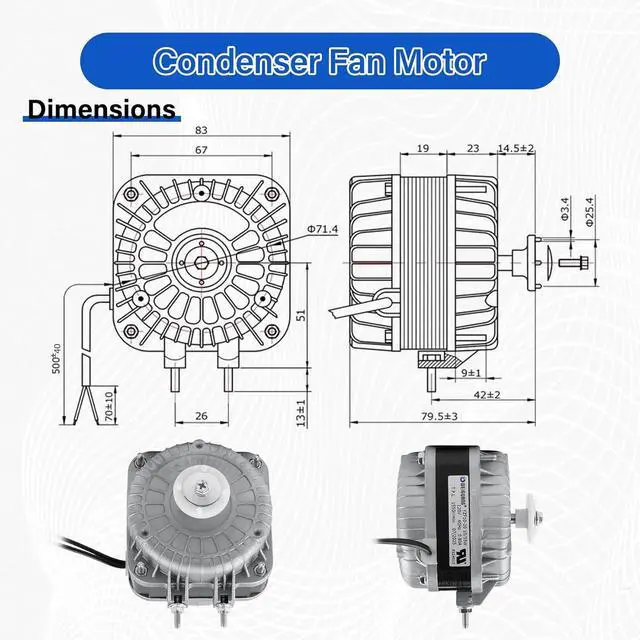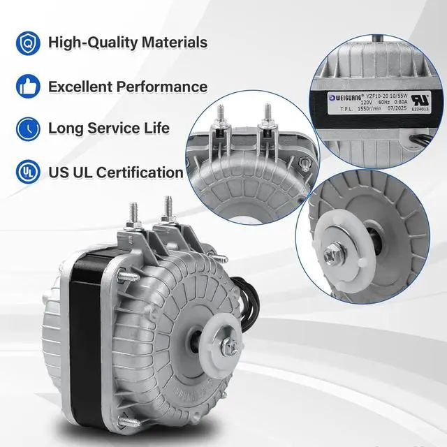 High-Quality: YZF10-20 fan motor is made of high-quality materials, all raw materials used in the motor have passed RoHS certification, high-temperature and corrosion-resistant. Precision machined and rigorously tested by the manufacturer, certified by UL/CSA, ensures long service life and excellent performance.