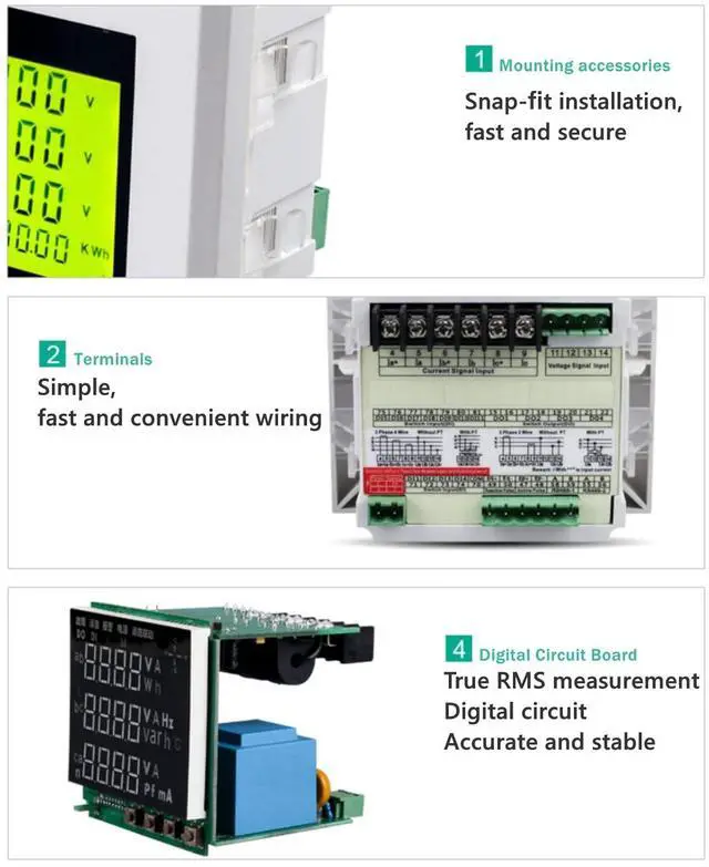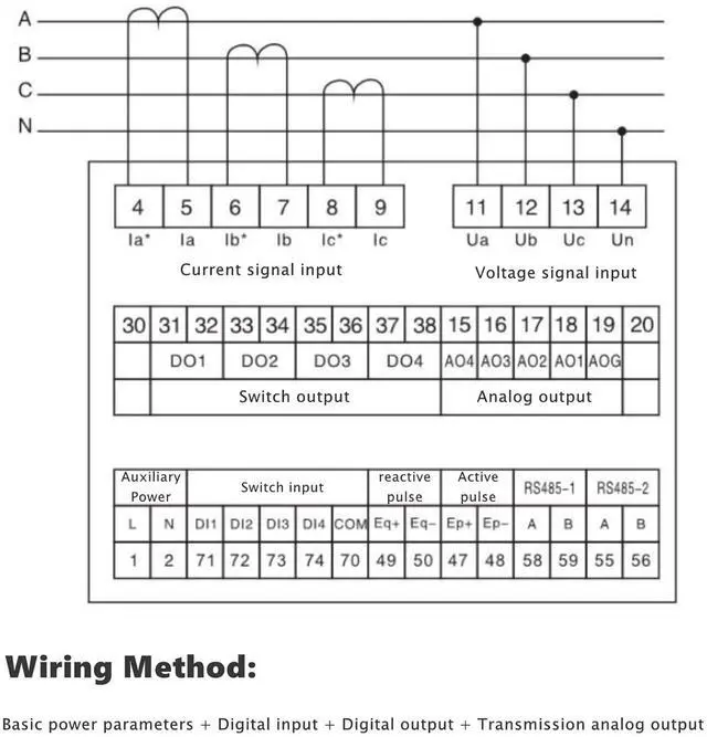 Programmable electric quantity alarming, switching input, analog output or remote control