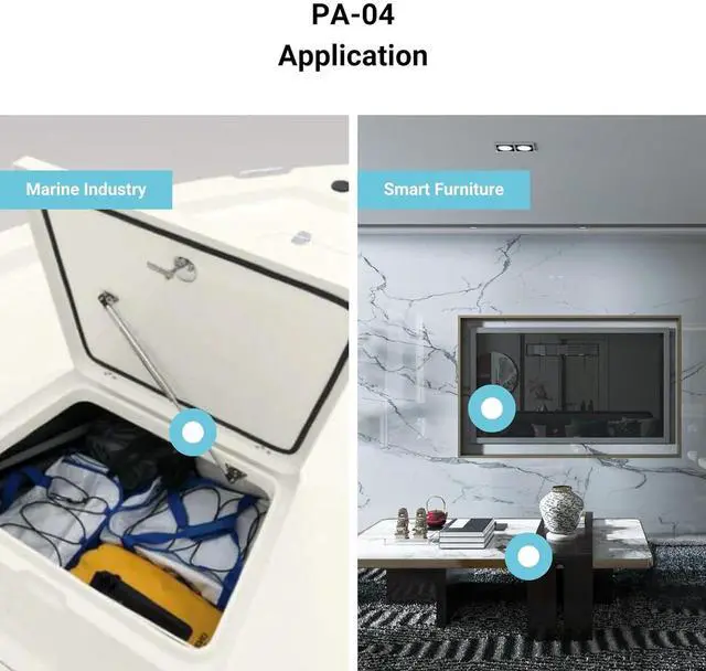 Use Cases: The combination of speed and medium force capabilities makes the PA-04 linear actuator ideal for industries such as automotive, manufacturing, home automation systems, machinery, factory, agricultural machines and mechanical equipment, automatic door opener, drawer and tool box, medical devices, electric nursing bed, furniture adjustment, electric sofa, electric wheelchair, material handling adjust, petroleum machinery, recliner, toolbox, electric power transportation, window opener