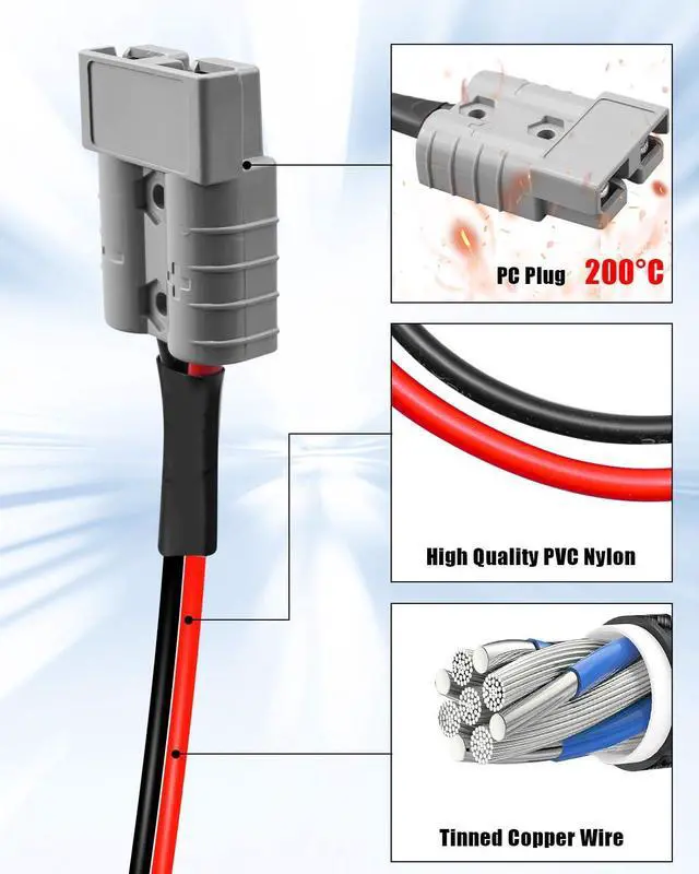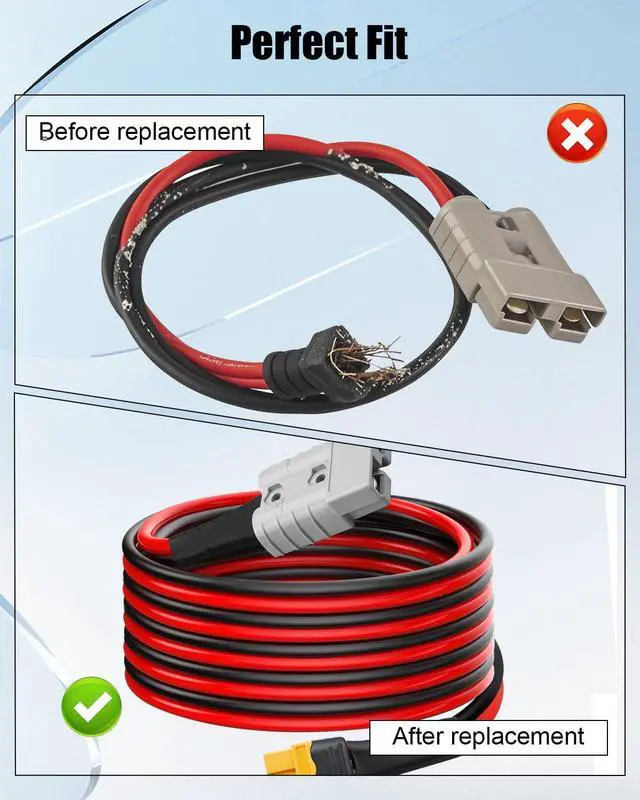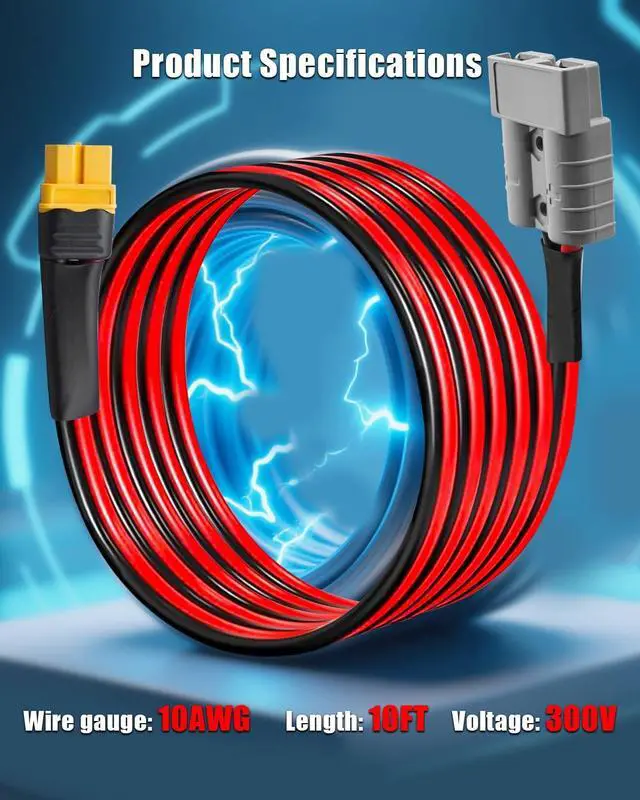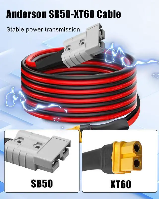 Easy Installation: SB50-XT60 quick-connect interface supports one-handed operation, 2-foot optimized cable length balances wiring flexibility, and welding terminals ensure stable connection, which can be quickly installed and greatly improves installation efficiency