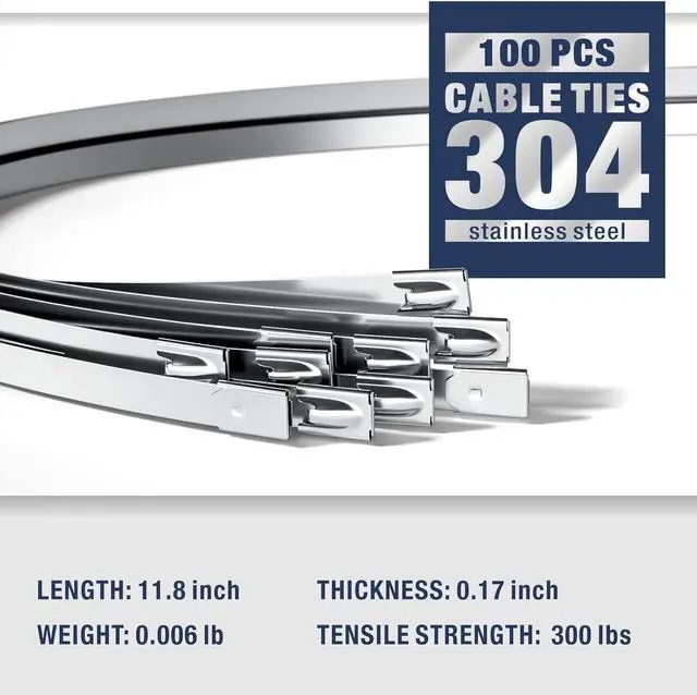QUALITY MATERIAL: Includes 100pcs stainless steel cable tie and a Release Tool. The tie is made of 304 stainless steel, which is UV-resistant, fire-resistant, cold-resistant, and wear-resistant.
