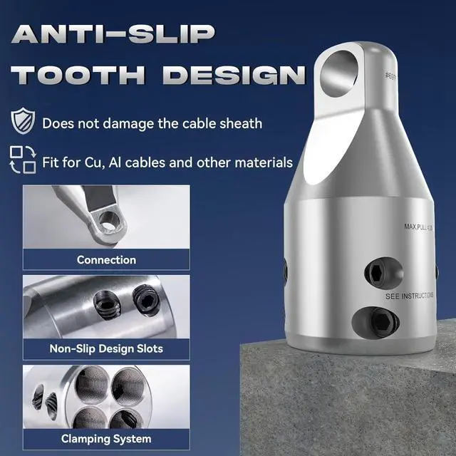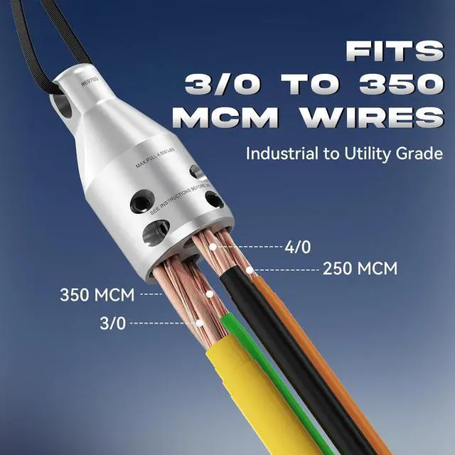 4 WIRE SLOTS FOR VERSATILITYEffortlessly grip multiple cables at once, saving time and hassle on big pulls. Perfect for 3/0 to 350 MCM wires (2-1/2" pipes or larger).
