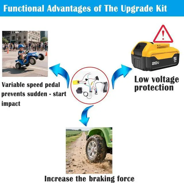 variable speed pedals supportThis dc motor speed controller supports variable speed control pedals, and also supports maximum speed settings in this mode to set the maximum safe speed your child needs