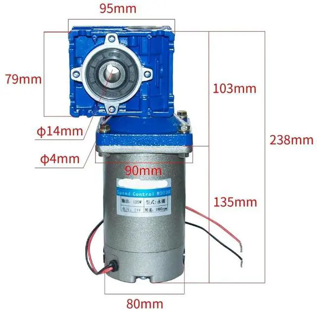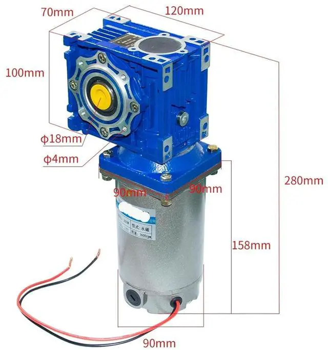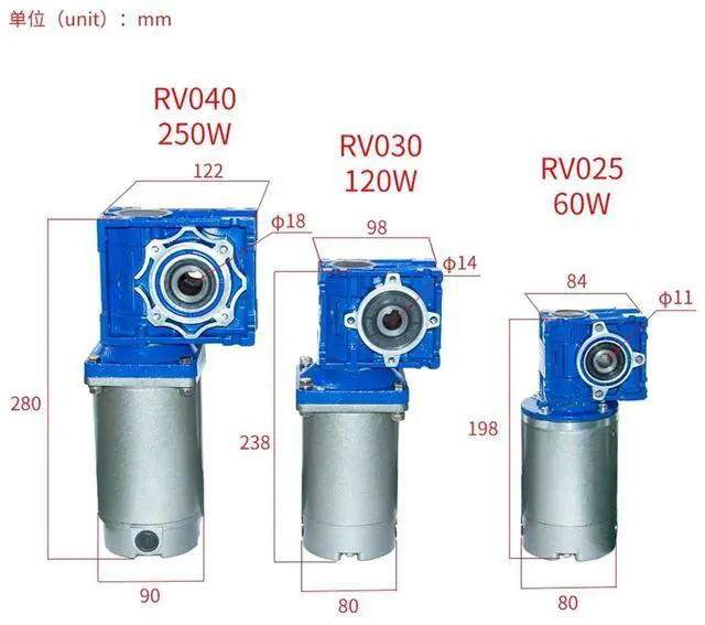 High-Torque DC Worm Gear Motor DC 12V 24V 90V 220V 120W/250W RV030 040 Gearbox DC Permanent Magnet Motor