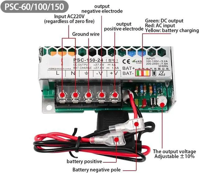 1pcs Delay UPS Function Switching Power Supply 110V/220V AC/DC 12V 24V 60W 100W 150W 250W 350W Industrial