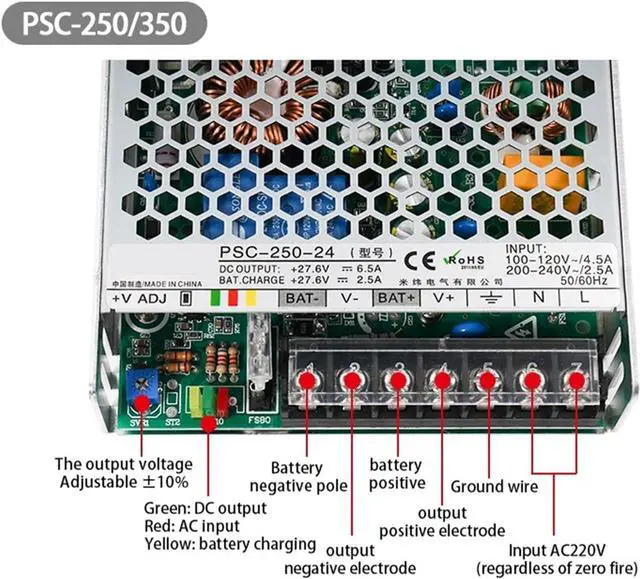 1pcs Delay UPS Function Switching Power Supply 110V/220V AC/DC 12V 24V 60W 100W 150W 250W 350W Industrial(24V,350W)
