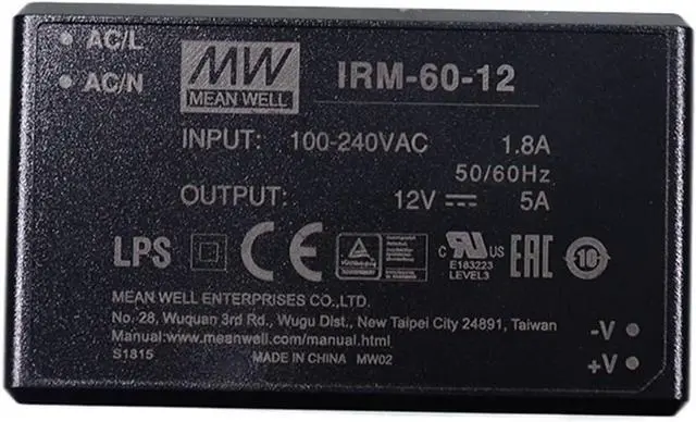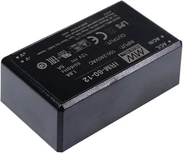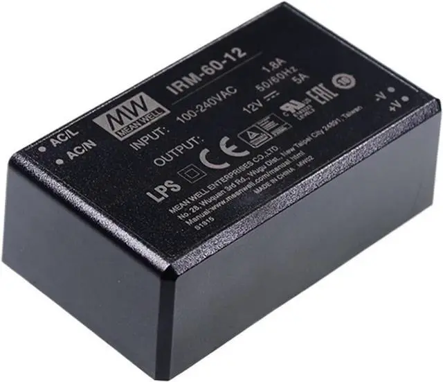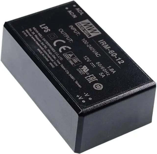 IRM-60 is a 60W miniature (87*52*29.5mm) AC-DC module-type power supply, ready to be soldered onto the PCB boards of various kinds of electronic instruments or industrial automation equipments. This product allows the universal input voltage range of 85~305VAC. The 94V-0 flame retardant plastic case and thefully-potted silicone enhance the heat dissipation and meet the anti-vibration demand up to 5G; moreover, it provides the fundamental resistance to dust and moisture.