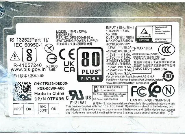 Model Number : XPS 3710 3910 T3660 500W