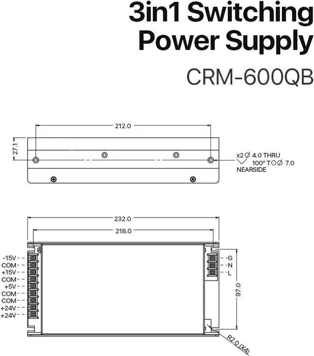 3in1 Switching Power Supply 5V 15V 24V CRM-600QB 110V/220V 16.5A 5A for Fiber Marking Machine Power System