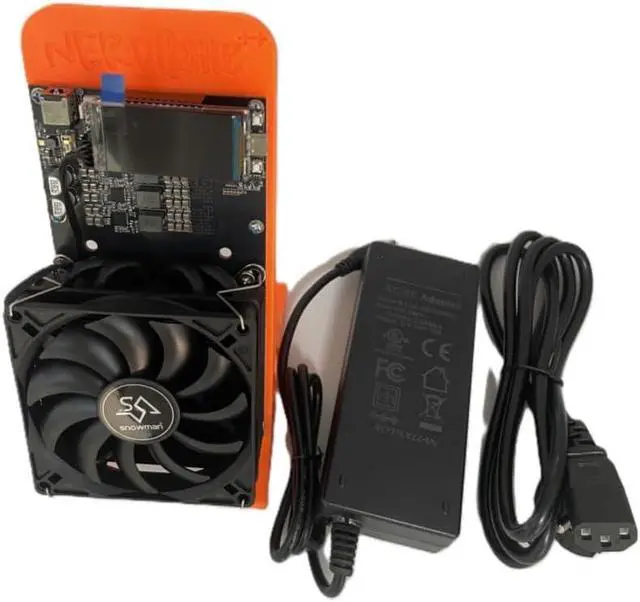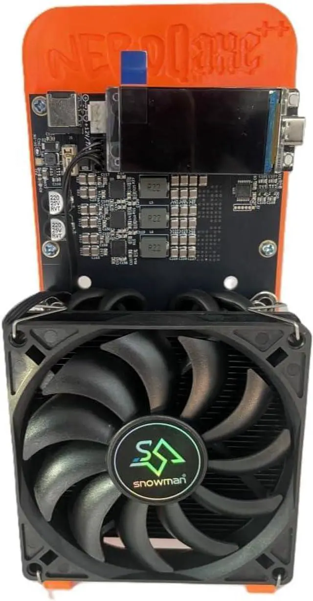 Bitaxe Nerdqaxe++ Open Source BTC Miner 4.8TH/s | 4×BM1370 ASIC Chips | 80W Low Power Bitcoin Solo Mining Machine with Power Supply | Quiet & Easy Setup Orange Color & US Plug