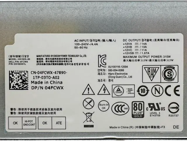 For 3020 7020 9020 XE2 T1700 SFF Power Supply D315ES001L H315ES-00 4FCWX 04FCWX 315W Power Supply