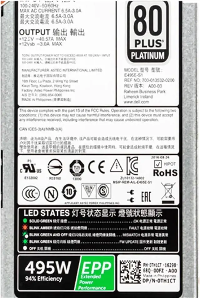 TH1CT 0TH1CT for R530 R530XD R540 R630 R640 R730 R730XD Swap 495W 80 Plus Platinum PSU Power Supply