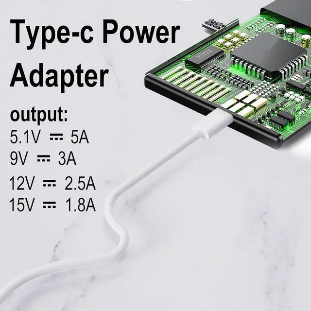 Input 100240V AC, 50/60HZ 0.8A Max; Connector: USB-C; Cable: 1.8,M Output 5.1V/5A, 9V/3A, 12V/2.25A, 15V/1.8A