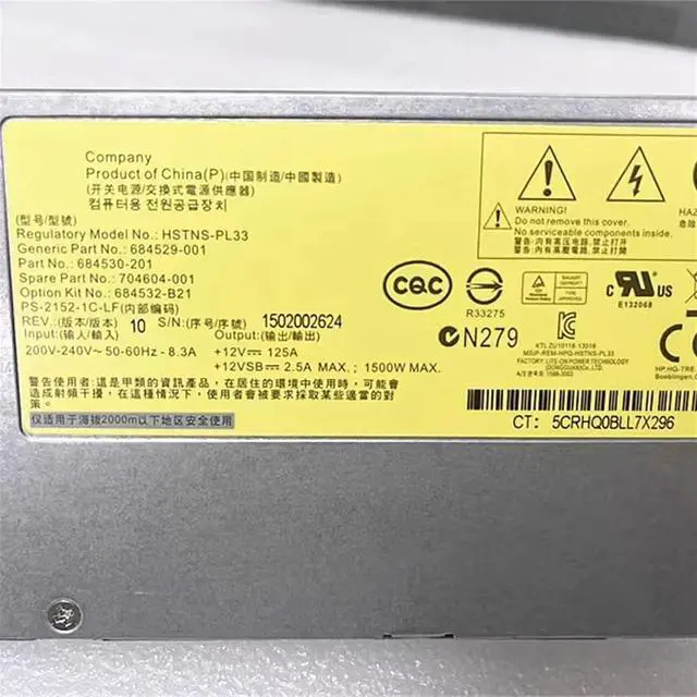 For DL560 G9 DL580 G8 G9 1500W Server Power Supply HSTNS-PL33 684529-001 684530-201 704604-001 684532-B21