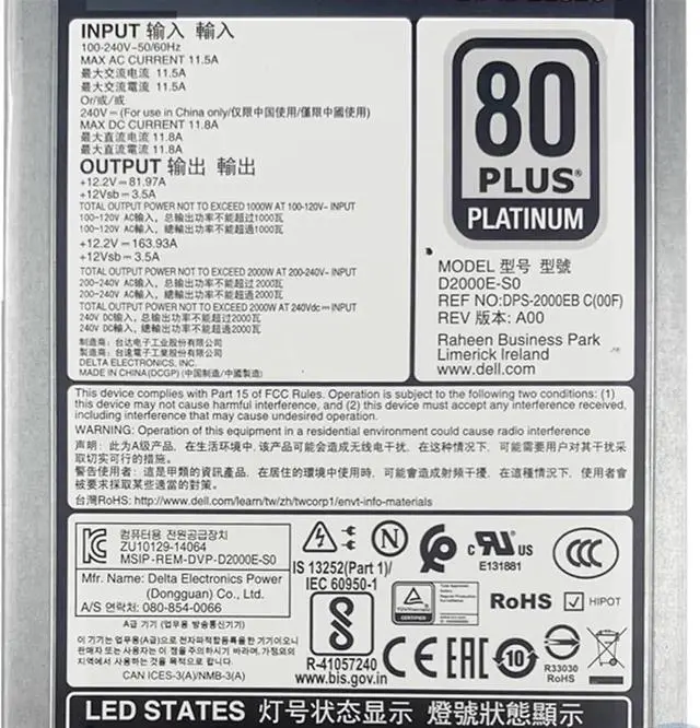 D2000E-S0 For R940 R840 R740 R740XD 2000W Server EPP Power Supply 0VWWF1 VWWF1 0J5WMG J5WMG