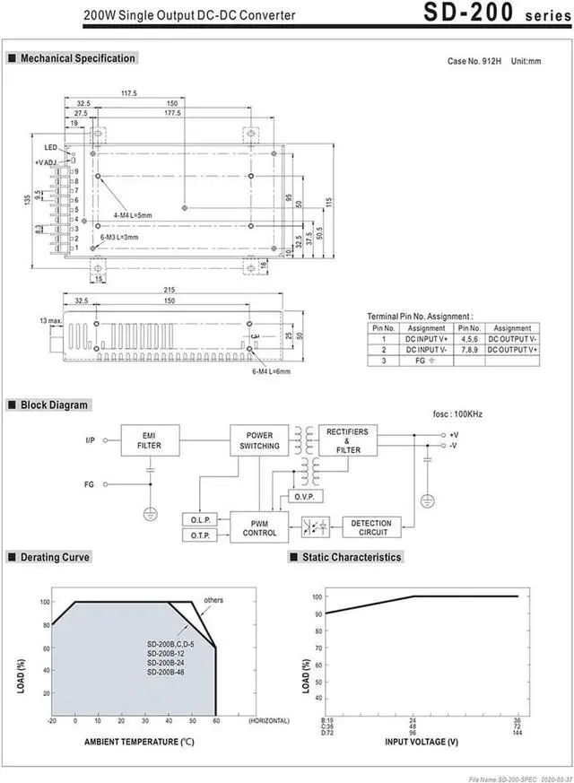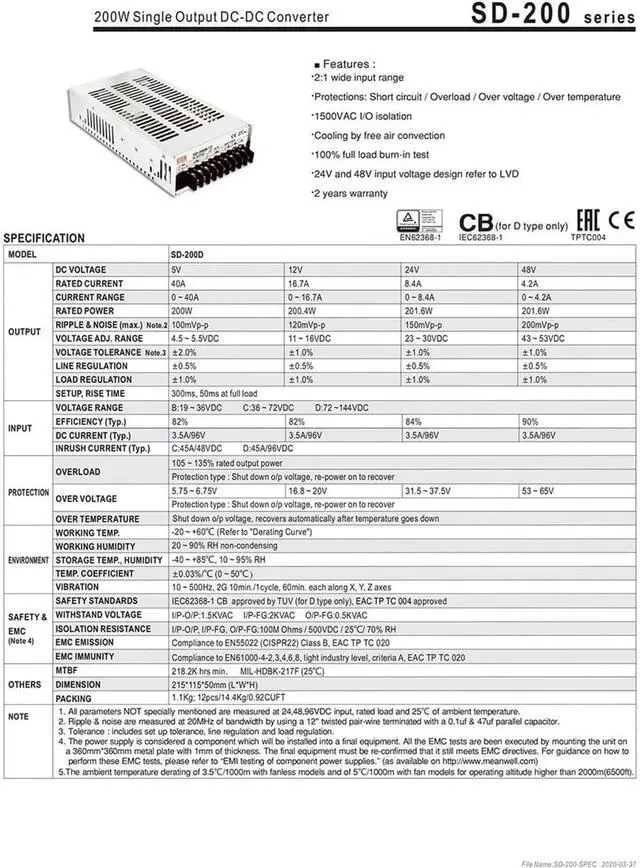 1 PC New SD-200D-24 Input 72~144V DC to 24V DC 200W DC-DC Converter Switching Power Supply 24V 8.4A Converter