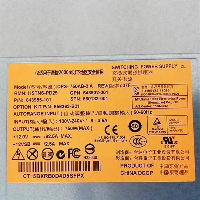 DPS-750AB-3 A for DL380 DL388P G6 G7 750W Server Power Supply HSTNS-PD29 643955-101 656363-B21 660183-001 643932-001
