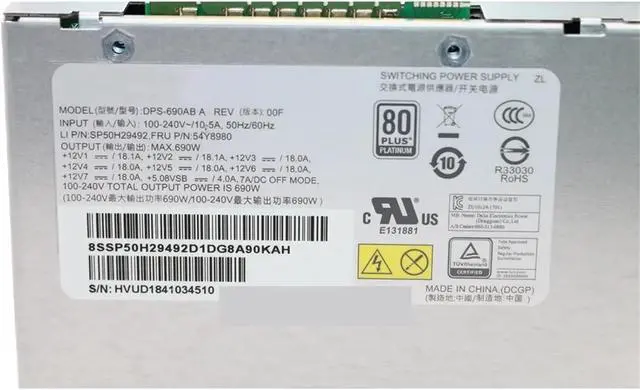 1pc For P720 P520 690W Server Workstation Power Supply DPS-690AB A 54Y8980 5P51D77010 5P51D77167