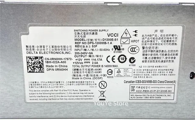 1pc for C6220 12V 114.17A 1400W Server Power Supply D1200E-S1 DPS-1200MB-1A CN-0RN0HH 0RN0HH RN0HH 0GJJRR GJJRR