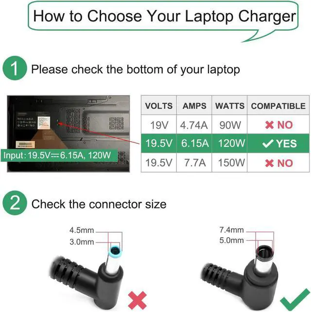 Connector Size: 7.4mm*5.0mm. Not 4.5mm*3.0mm Please check your Laptop to confirm the size.