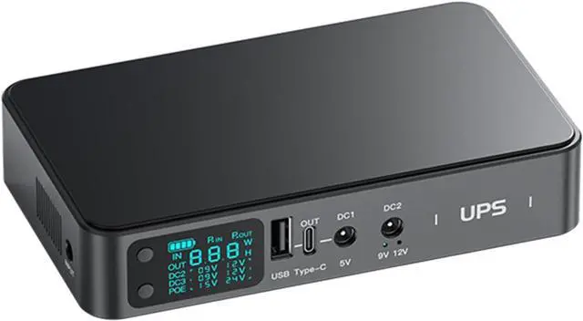 4-port USB+Type C+2x5.5x2.1mm output uninterruptible power supply with screen display