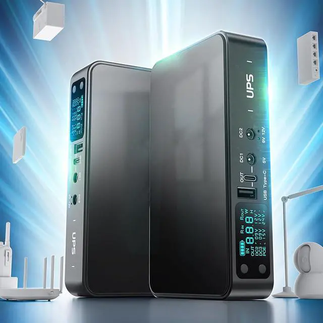 4-port USB+Type C+2x5.5x2.1mm output uninterruptible power supply with screen display