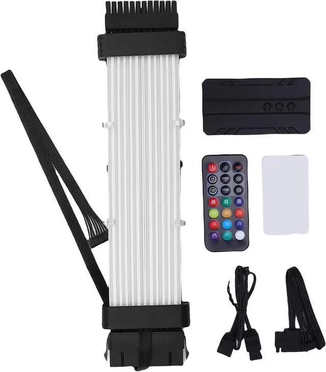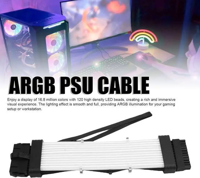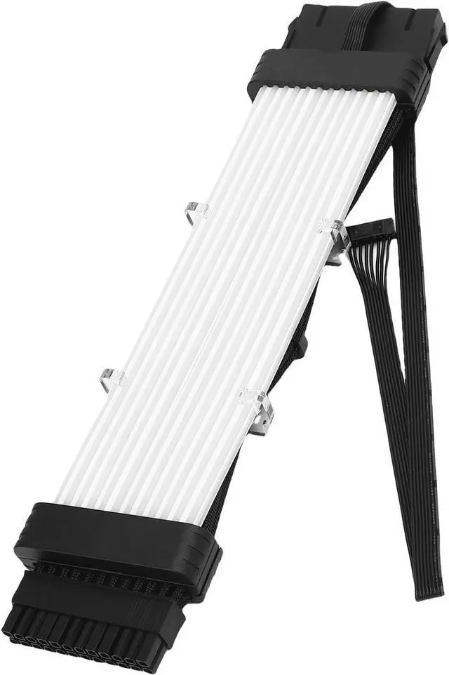 1. Versatile: The cable offers remarkable flexibility, allowing it to be used as a lighting strip for your PC case or as a decorative power cable for 24 pin motherboard connections and 8 pin graphics cards. With built in bundling tape, there are no awkward extension cords.