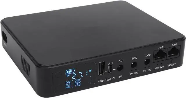 9000mAh Uninterruptible Power Supply, Security Camera Mini UPS Mini UPS Battery Backup POE 15V 24V USB 5V 9V 12V (US Plug)