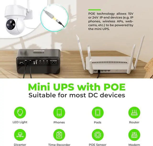 Safeguard your essential devices and stay connected during power outages with the Mini DC UPS. This compact and versatile backup power solution provides reliable temporary power for your WiFi router or modem, smartphones, CCTV cameras, and LED lights. With multiple output ports including USB Type-C, you can keep your critical electronics running smoothly until the main power supply is restored. Designed for convenience, the Mini DC UPS offers a range of output voltages from 5V to 12V, ensuring compatibility with various devices. Its sleek and portable design makes it an ideal companion for home, office, or travel. Stay prepared and maintain uninterrupted connectivity with this practical and efficient power backup solution.