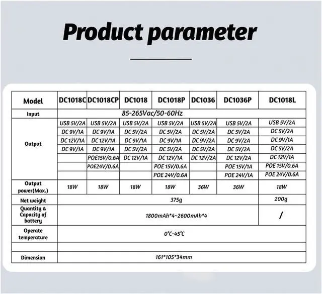 No Battery 85-265V 18650 li-ion Output 5V9V12V Mini DC UPS Backup Uninterruptible Power Supply