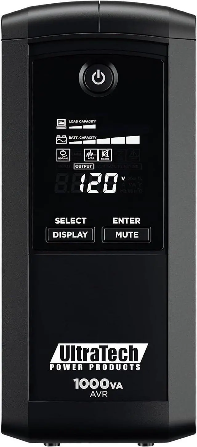 UltraTech 0E-1000V9RD Line-Interactive Mini-Tower UPS; 1000VA/600W; 9 Grounded Outlets, 5 with Battery Backup; Automatic Voltage Regulation; HID-Compliant USB Connectivity Port; LCD Display