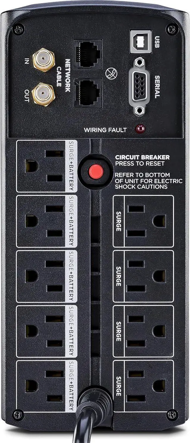 A mini-tower UPS with line interactive topology, the UltraTech 0E-1000V9RD provides battery backup and surge protection for desktop computers, workstations, network devices and home entertainment systems. The 0E-1000V9RD uses Automatic Voltage Regulation (AVR) to correct minor power fluctuations without switching to battery power, which extends battery life and is essential in areas where power fluctuations occur frequently.