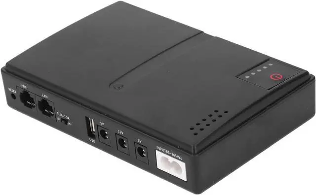 Item Type: Mini UPS Material: ABS Battery: 4 x 2600mAh Rechargeable Lithium Cell (built in) Output Power: 36W Output: USB 5V 2A, DC 5V 2A, DC 9V 2A, DC 12V 2A Package List 1 x UPS Power Supply 2 x DC Cables 1 x Supply Cord 1 x User Manual
